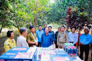 នាព្រឹកថ្ងៃសុក្រ ទី៣០ ខែមករា ឆ្នាំ២០២៦ ឯកឧត្តម វ៉ា ថន អភិបាលខេត្តក្រចេះ បានអញ្ជើញនាំយកនូវថវិកាចំនួន ៥០លានរៀល និងគ្រឿងឧបភោគបរិភោគ ដែលជាអំណោយដ៏ថ្លៃថ្លាបំផុតរបស់ សម្តេចមហាបវរធិបតី ហ៊ុន ម៉ាណែត នាយករដ្ឋមន្ត្រី នៃព្រះរាជាណាចក្រកម្ពុជា និងលោកជំទាវបណ្ឌិត ពេជ ចន្ទមុន្នី ហ៊ុន ម៉ាណែត ឧបត្ថម្ភជូនដល់យោធិន មួង ស៊ីលុន ដែលរងរបួសធ្ងន់ និងកំពុងសម្រាកនៅផ្ទះក្នុងសង្កាត់កោះទ្រង់ ក្រុងក្រចេះ ខេត្តក្រចេះ។