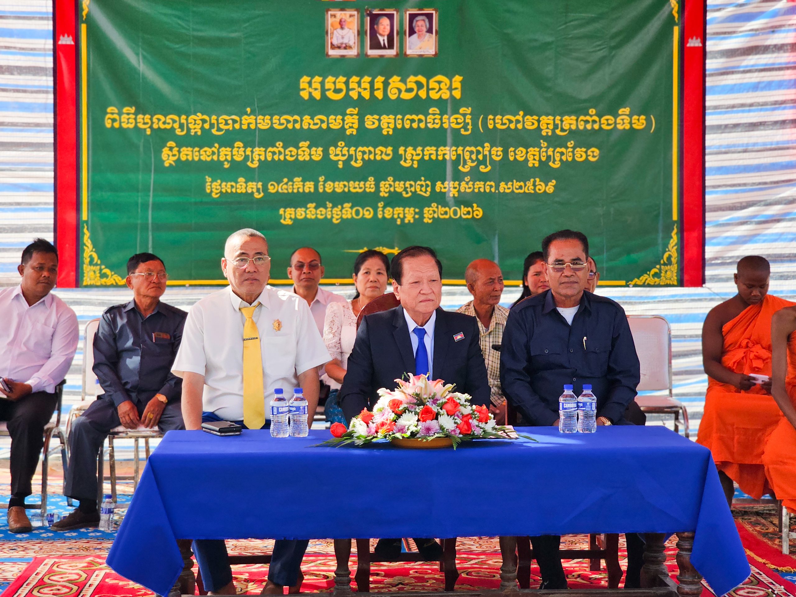 ព្រៃវែង៖ នាព្រឹកថ្ងៃទី០១ ខែកុម្ភៈ ឆ្នាំ២០២៦ នេះ ឯកឧត្តមបណ្ឌិត សាយ ឫទ្ធី ប្រធានក្រុមការងារចល័តចុះមូលដ្ឋានខេត្តព្រៃវែង និងលោកជំទាវ និងឯកឧត្ដមបណ្ឌិត មាស ច័ន្ទរិទ្ធ ទីប្រឹក្សាសម្តេចអគ្គមហាសេនាបតីតេជោ ហ៊ុន សែន ព្រមទាំងសប្បុរសជន និងពុទ្ធបរិស័ទចំណុះជើងវត្ត បានអញ្ជើញជាអធិបតីក្នុងពិធីបុណ្យផ្កាប្រាក់សាមគ្គី ដើម្បីប្រមូលបច្ច័យកសាងសមិទ្ធផលនានា នៅក្នុងវត្តពោធិរង្សី ហៅវត្តត្រពាំងទឹមស្ថិតនៅភូមិត្រពាំងទឹម ឃុំព្រាល ស្រុកកញ្ជ្រៀច ខេត្តព្រៃវែង។