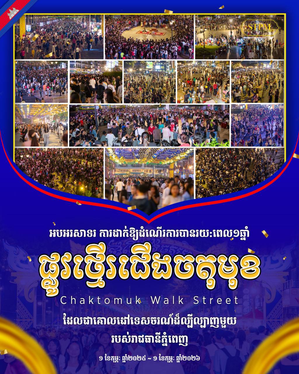 រាជធានីភ្នំពេញជាប់ ចំណាត់ថ្នាក់លេខ២ នៅលើពិភពលោក ជាទីក្រុងសប្បាយភាពពេលរាត្រី និងជាប់ចំណាត់ថ្នាក់លេខ១០ លើពិភពលោក ជាទីក្រុងមានភ្ញៀវទេសចរណ៍ចូលចិត្តមកកម្សាន្តជាងគេព្រមទាំងទទួលបានការចាត់ថ្នាក់ពីសារព័ត៌មានអន្តរជាតិ BBC ជាគោលដៅទេសចរណ៍ដ៏ល្អបំផុតទាំង២០ សម្រាប់ឆ្នាំ២០២៦នេះផងដែរ។ ភាពជោគជ័យនៃការដាក់ឱ្យដំណើរការផ្លូវថ្មើរជើងចតុមុខក្នុងរយៈពេល១ឆ្នាំនេះ អាចកើតឡើងទៅ បាន គឺដោយមានការខិតខំប្រឹងប្រែងរបស់ថ្នាក់ដឹកនាំរដ្ឋបាលរាជធានីភ្នំពេញ មន្រ្តីរាជការគ្រប់លំដាប់ថ្នាក់ កងកម្លាំងគ្រប់ប្រភេទ ព្រមទាំងការចូលរួមគាំទ្រពីសំណាក់បងប្អូនប្រជាពលរដ្ឋទូទៅ។