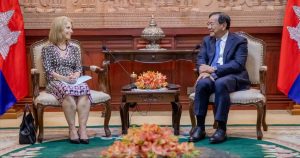 ក្នុងឱកាសអនុញ្ញាតឱ្យ លោកជំទាវ Vivian Loss Sanmartin ឯកអគ្គរដ្ឋទូតវិសាមញ្ញ និង ពេញសមត្ថភាព នៃប្រទេសប្រេស៊ីល ប្រចាំព្រះរាជាណាចក្រកម្ពុជា ចូលជួបសម្តែងការគួរសម កាលពីថ្ងៃទី២ ខែកុម្ភៈ ឆ្នាំ២០២៦ នៅទីស្តីការក្រសួង ឯកឧត្តមឧបនាយករដ្ឋមន្ត្រី ប្រាក់ សុខុន រដ្ឋមន្ត្រីការបរទេស និងសហប្រតិបត្តិការអន្តរជាតិ បានស្វាគមន៍យ៉ាងកក់ក្តៅ និងអបអរសាទរ ចំពោះការតែងតាំង លោកជំទាវ ជាឯកអគ្គរដ្ឋទូតដំបូងរបស់ប្រទេសប្រេស៊ីលប្រចាំកម្ពុជា ដែលមាន និវេសនដ្ឋាននៅរាជធានីភ្នំពេញ។