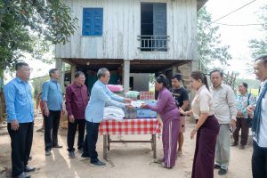 ឆ្លៀតក្នុងឱកាសដ៏ថ្លៃថ្លានោះ ខ្ញុំបាទ និងគណៈប្រតិភូ បាននាំមកនូវប្រសាសន៍ផ្តាំផ្ញើសួរសុខទុក្ខពីសំណាក់ប្រមុខរាជរដ្ឋាភិបាល សម្តេចមហាបវរធិបតី ហ៊ុន ម៉ាណែត នាយករដ្ឋមន្ត្រី នៃព្រះរាជាណាចក្រកម្ពុជា និងលោកជំទាវបណ្ឌិត ពេជ ចន្ទមុន្នី ហ៊ុនម៉ាណែត និងឯកឧត្តមអភិសន្តិបណ្ឌិត ស សុខា ឧបនាយករដ្ឋមន្ត្រី រដ្ឋមន្ត្រីក្រសួងមហាផ្ទៃ និងជាប្រធានក្រុមការងាររាជរដ្ឋាភិបាលចុះមូលដ្ឋានខេត្តព្រៃវែង និងលោកជំទាវ កែ សួនសុភី សសុខា ដែលសម្តេច និងឯកឧត្តម តែងតែគិតគូអំពីសុខទុក្ខរបស់បងប្អូនប្រជាពលរដ្ឋគ្រប់ស្រទាប់វណ្ណៈ ដោយមិនគិតពីនិន្នាការនយោបាយឡើយ។ ហើយខ្ញុំបាទ និងគណៈប្រតិភូក៏បានជូនអំណោយជាថវិកាដល់លោកតា លោកយាយ បងប្អូនប្រជាពលរដ្ឋដែលបានអញ្ជើញចូលរួមក្នុងពិធីនោះចំនួន ១២៥នាក់ ក្នុងម្នាក់ថវិកាចំនួន ២០.០០០រៀល (សរុប ២.៥០០.០០០រៀល)។